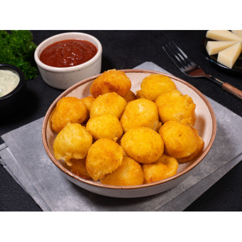 Cheese croquettes are crispy potato and cheese bites in a golden breadcrumb coating, perfect as a snack, side dish or party appetizer. The filling combines mashed potatoes, cheese and chicken eggs with a touch of dry garlic, salt and ground black pepper, then is coated in premium wheat flour and breadcrumbs for a crunchy exterior after frying.