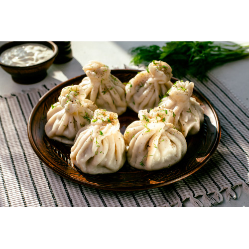Beef Khinkali are traditional Georgian-style dumplings with a rich, aromatic filling and a juicy meat centre. Thin dough made from premium wheat flour holds a generous portion of minced boneless beef and beef fat mixed with onion, fresh cilantro and parsley.