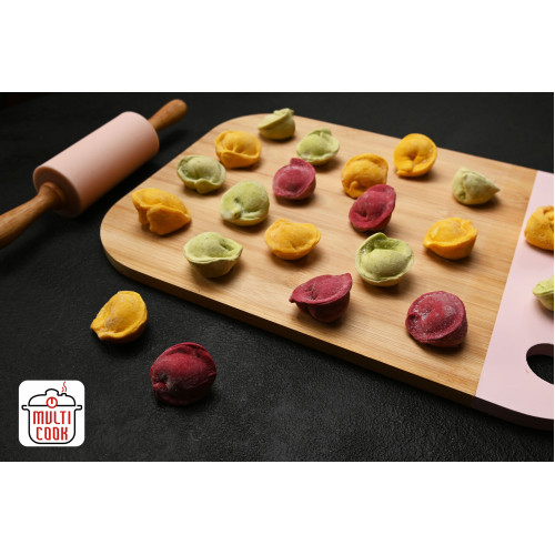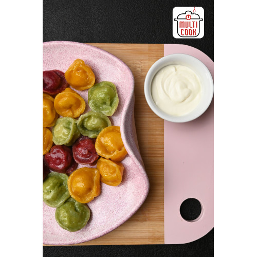 These children’s chicken pelmeni are created specially with kids in mind. The dumplings are made from premium wheat flour and colored with natural beet, carrot and spinach juices, giving the dough a bright, playful look that attracts children without artificial colors.