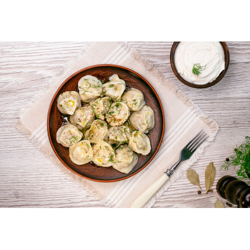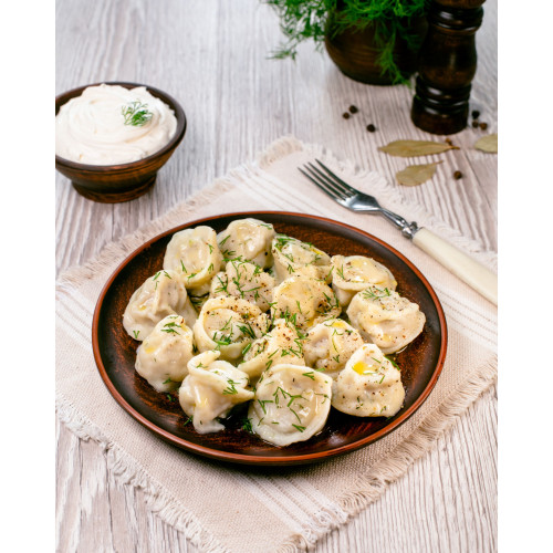 Thanks to the combination of three types of meat and pork fat, the filling stays tender and succulent after cooking. Fresh dill and ground black pepper add aroma, while refined sunflower oil helps keep the texture soft and pleasant. Pelmeni are delivered frozen and cook in just 5–7 minutes in boiling salted water – an easy way to serve a hot, satisfying meal for the whole family.